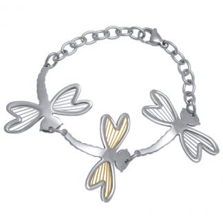 Stainless Steel Bracelet WITH 3 DRAGONFLY SHAPE IN IPG TWO TONE