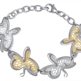 Stainless Steel Bracelet WITH 4 BUTTERFLY SHAPE IN IPG TWO TONE