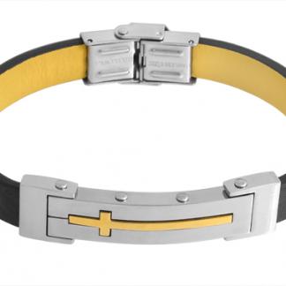 Stainless Steel Bracelet WITH CENTRE PLATE WITH CROSS PATTERN IN IPG 2 TONE