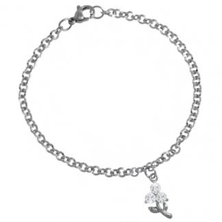 Stainless Steel Charm Bracelet WITH FLOWER SHAPE CHARM WITH 3 CZ ALL IN STEEL COLOR