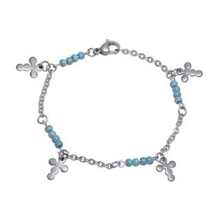 Stainless Steel Bracelet WITH 4 CROSS SHAPE CHARM WITH 4 SETS OF TURQUOISE STONE
