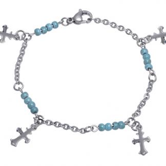Stainless Steel Bracelet WITH 4 CROSS WITH 4 SETS OF TURQUOISE STONE