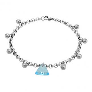 STAINLESS STEEL BRACELET WITH S/S BEADS WITH TRIANGLE CRYSTAL ALL IN STEEL COLOR