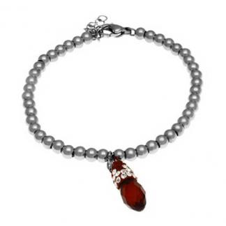 STAINLESS STEEL BRACELET WITH S/S BEADS WITH DROP CRYSTAL
