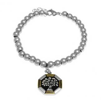 | STAINLESS STEEL BRACELET IN IPG TWO TONES & BLACK COLOR WITH S/S BEADS WITH TREE OF LIFE PENDANT IN OCTAGON SHAPE |