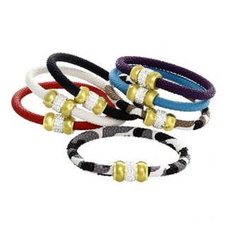 STAINLESS STEEL BRACELET IN DIFFERENCE COLOR LEATHER WITH IPG MAGNET LOCK WITH CZ