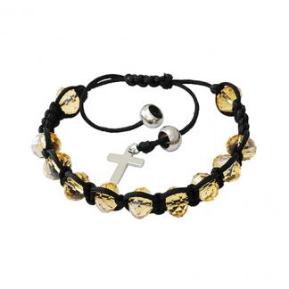 Stainless Steel Bracelet Cotton cord with Stones in different Colors with hanging cross