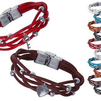 Stainless steel bracelet 5pcs Leather in one pc with 8pcs stainless steel Balls and 1 S/S color key OR HEART