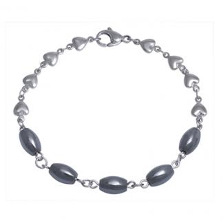 Stainless Steel Bracelet WITH 5 HEMATITE BEADS WITH HEART CHAIN OVAL HEMATITE