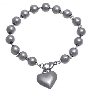STAINLESS STEEL BRACELET WITH 16 S/S BEAD & SOLID HEART CHARM ALL IN STEEL COLOR