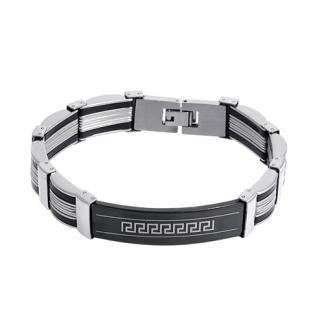 STAINLESS STEEL BRACELET WITH PU WITH ID PLATE IN IPB WITH PATTERN