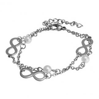 STAINLESS STEEL BRACELET WITH 3 INFINITY CHARMS WITH 3 PEARLS