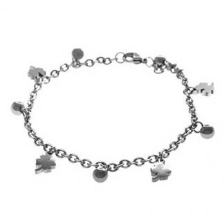 STAINLESS STEEL BRACELET WITH 5 S/S BEADS WITH 4 FOUR-LEAFS CLOVER ALL IN STEEL COLOR