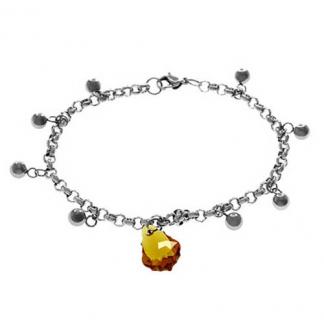 STAINLESS STEEL BRACELET WITH S/S BEADS WITH CRYSTAL DROPS