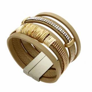 STAINLESS STEEL BRACELET 4 BROWN IMITATIONLEATHER JOINT WITH RECTANGLE MAGNET CLIP DECORATED WITH DIFFERENT DECORATIVES TEXTURES AND CZ IPG COLOR
