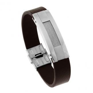 STAINLESS STEEL BRACELET WITH LEATHER. WITH WIRE IN THE ID PLATE