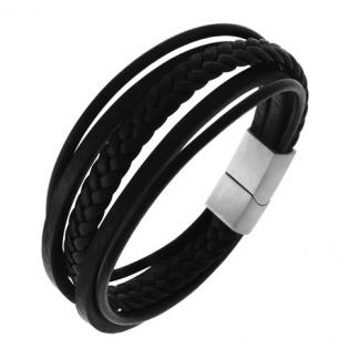 STAINLESS STEEL BRACELET WITH BLACK LEATHER