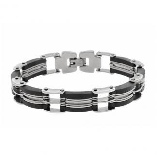 STAINLESS STEEL BRACELET WITH BLACK PU / ALL IN SS COLOR