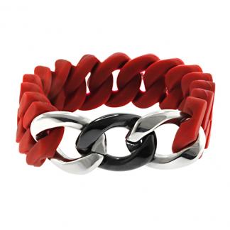 STAINLESS STEEL BRACELET WITH RUBBER IN DARK RED COLOR/ IPB TWO TONE COLOR