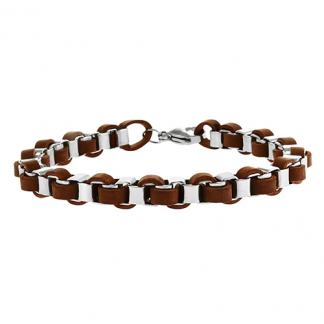 STAINLESS STEEL BRACELET WITH MICROFIBER IN BROWN COLOR