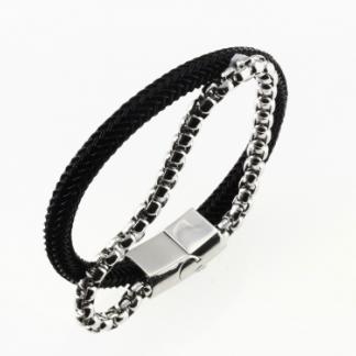 STAINLESS STEEL BRACELET WITH BLACK WIRE AND STEEL CHAIN