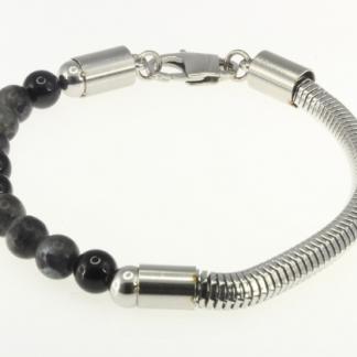 STAINLESS STEEL ELASTIC BRACELET WITH BLACK LAVA STONE WITH CHAIN
