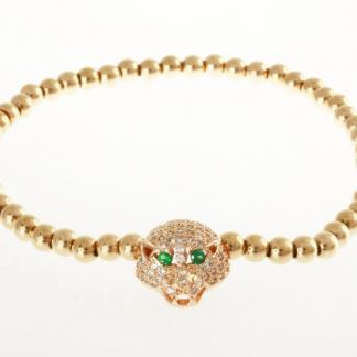 STAINLESS STEEL BRACELET WITH CENTER PANTHER WITH WHITE CRYSTALS ALL IN IPG COLOR
