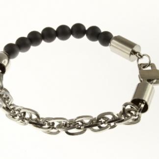 STAINLESS STEEL ONIX BEADS & CHAIN BRACELET ALL IN S/S COLOR