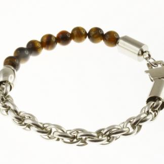 STAINLESS STEEL TIGER EYES BEADS & CHAIN BRACELET ALL IN S/S COLOR