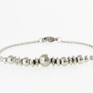 STAINLESS STEEL ROUND AND FLATS STEEL BEADS BRACELET CENTER DIAMANTITE STEEL BEAD ALL IN S/S COLOR