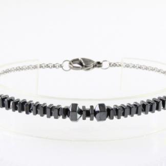 STAINLESS STEEL STEEL AND HEMATITE BEADS BRACELET ALL IN S/S COLOR