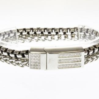 STAINLESS STEEL DOUBLE CHAIN MEN BRACELET LOCK WITH CNC SETTING ALL IN S/S COLOR