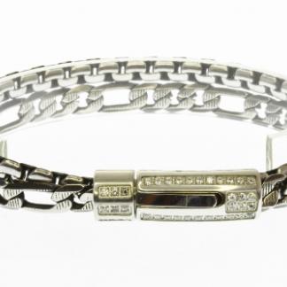 STAINLESS STEEL DOUBLE CHAIN MEN BRACELET LOCK WITH CNC SETTING ALL IN S/S COLOR