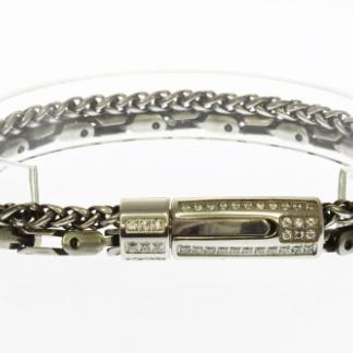 STAINLESS STEEL DOUBLE CHAIN MEN BRACELET LOCK WITH CNC SETTING ALL IN S/S COLOR