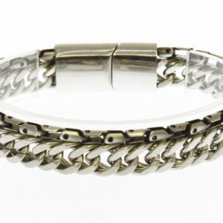STAINLESS STEEL DOUBLE CHAIN MEN BRACELET BOTTOM CHAIN WITH THE INNER LINKS OXIDIZED
