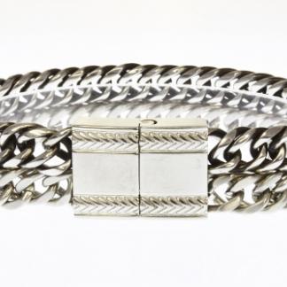 STAINLESS STEEL DOUBLE CHAIN MEN BRACELET LOCK WITH CNC SETTING BOTTOM WITH THE INNER LINKS OXIDIZED LOCK IN S/S COLOR