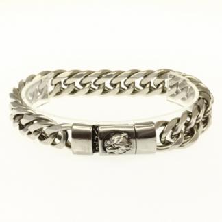 STAINLESS STEEL CHAIN MEN BRACELET ALL IN S/S COLOR CHAIN INNER LINKS LOCK OXIDIZED WITH WOLF FACE ON LOCK