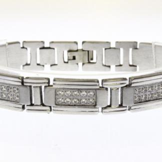 STAINLESS STEEL LINK MEN BRACELET IN SS COLOR 3 CENTER PIECE LINKS WITH CNC SETTING