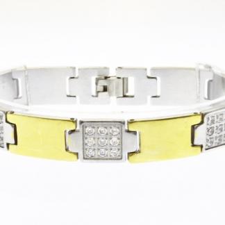 STAINLESS STEEL LINK MEN BRACELET IN IPG 2 TONE 3 CENTER LINKS WITH CNC SETTING