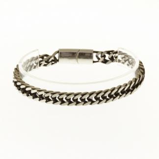 STAINLESS STEEL CHAIN MEN BRACELET ALL IN S/S COLOR CHAIN INNER LINKS OXIDIZED