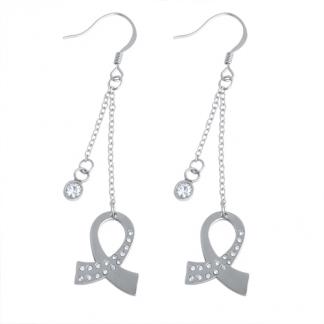 STAINLESS STEEL EARRING WITH RIBBON WITH CZ ALL IN S/S COLOR