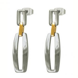 STAINLESS STEEL EARRING WITH 3 CHAIN IN IPG TWO TONE