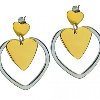 STAINLESS STEEL EARRING IN 3 HEART SHAPE IN IPG TWO TONES
