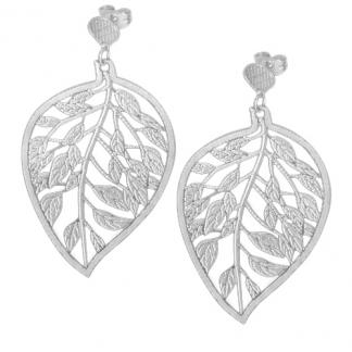 STAINLESS STEEL EARRING IN LEAF SHAPE WITH LEAF PATTERN ALL IN S/S COLOR