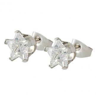 STAINLESS STEEL EARRING IN STAR SHAPE WITH 9MM CZ ALL IN S/S COLOR