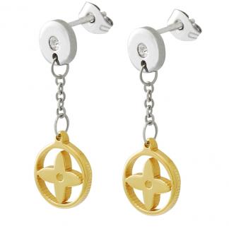STAINLESS STEEL EARRING IN CIRCLE SHAPE WITH CZ IN IPG TWO TONES