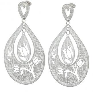 STAINLESS STEEL EARRING IN DROP SHAPE WITH ROSE PATTERN ALL IN S/S COLOR