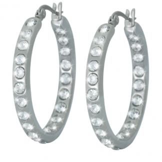 STAINLESS STEEL EARRINGIN ROUND SHAPE WITH CZ INSIDE & OUTSIDE ALL IN S/S COLOR
