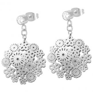 STAINLESS STEEL EARRING IN FLOWER SHAPE (front & back side in Soldered) WITH CZ (with pin & push back) ALL IN S/S COLOR