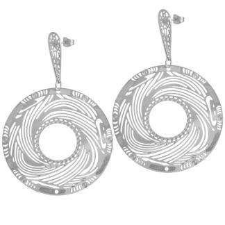 STAINLESS STEEL EARRING IN CIRCLE RING SHAPE WITH WAVE CUTOUT PATTERN IN S/S COLOR